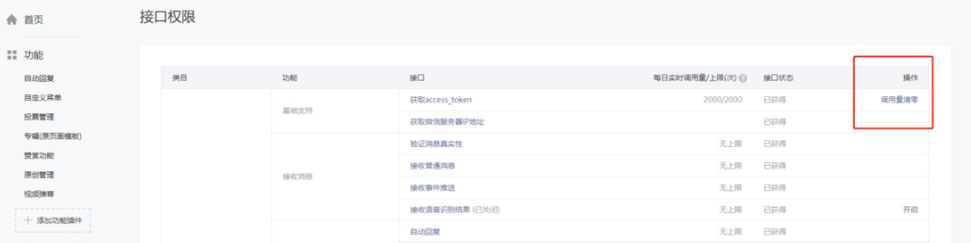 公众号 —— 登录公众平台mp.weixin.qq.com >> 设置与开发 >> 接口权限 >> 清零access_token调用量