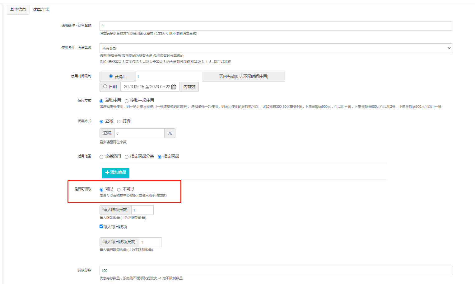 3.优惠方式设置